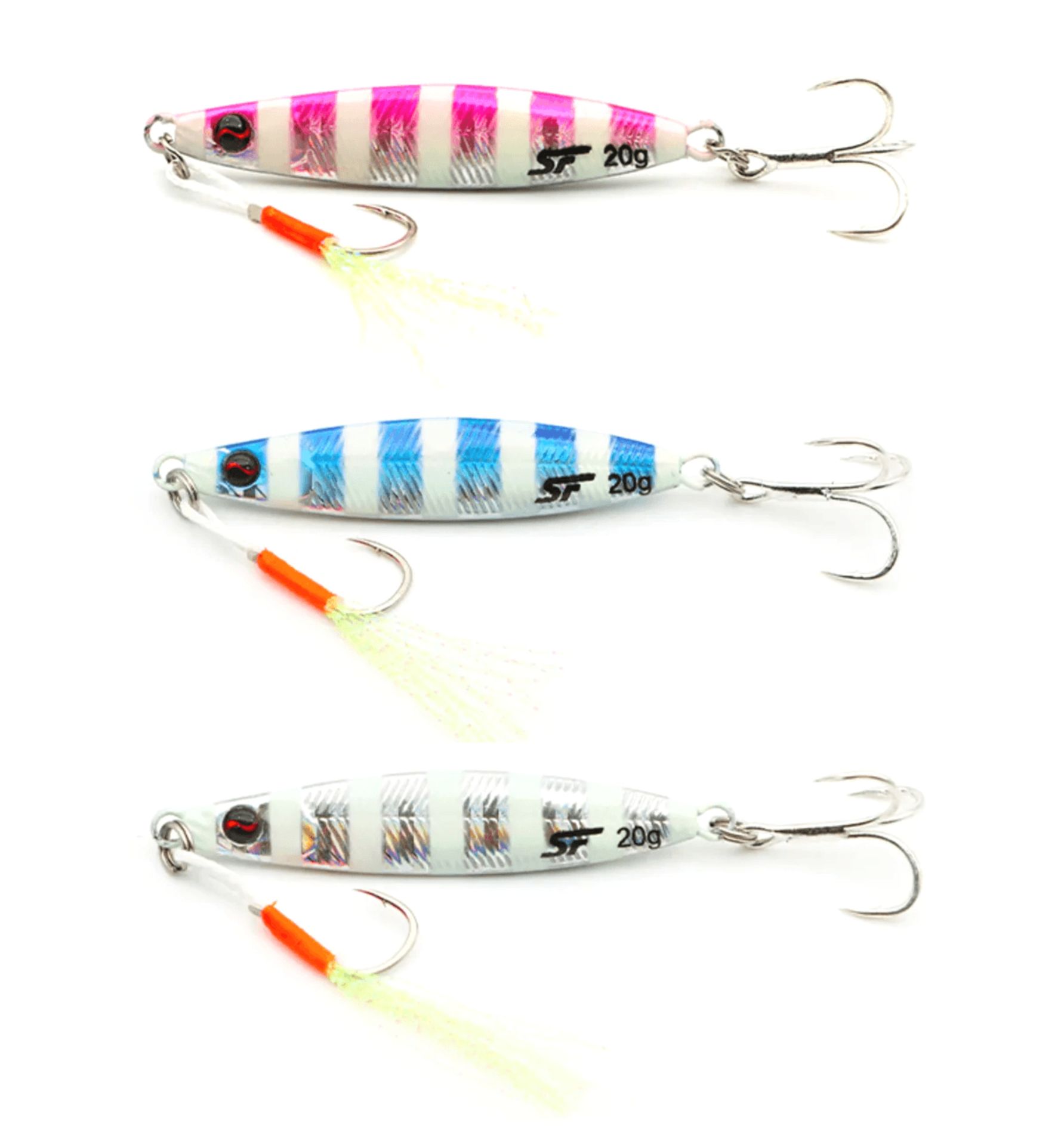 Psycho Sprat Jig 3 Adet Turkish Zebra Mix, 3 farklı Zebra Glow jigden oluşan bir settir. Bu yemler, küçük balıkları taklit eden gerçekçi tasarımlarıyla dikkat çeker.Genellikle sahilden veya kayalık alanlardan balık avlamak için kullanılan bu yemler Türkiye sularının en avcı 3 rengi ile deniz ve tatlı su balıklarının dikkatini çeken en avcı renklerdir.